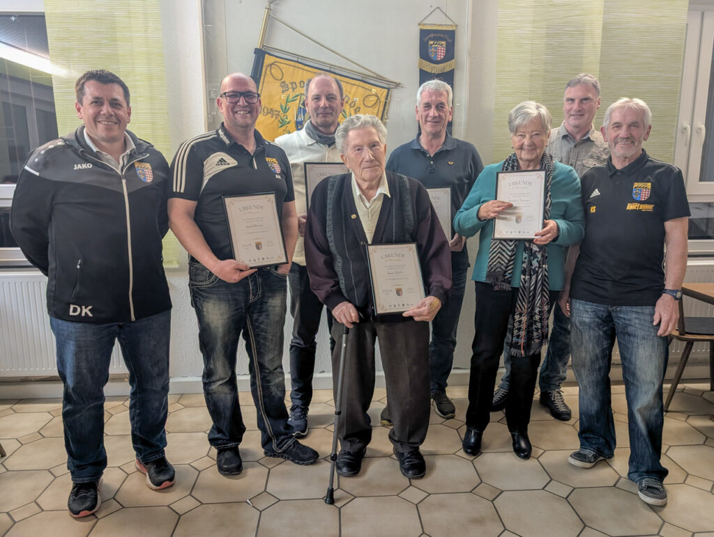 Ein besonderer Moment des Abends waren die Ehrungen für langjährige Vereinstreue. Für stolze 70 Jahre Mitgliedschaft wurde Roman Richter ausgezeichnet. Seit 40 Jahren gehören Hannelore Thormann, Brigitte Sendersky, Ralf Wurmbäck, Gunter Siegel, Dieter Schellmann, Alexander Braitmaier und Rainer Braitmaier dem Verein an. Für 25 Jahre Mitgliedschaft wurde Harald Mirrione geehrt.